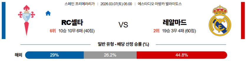 03월07일 셀타 비고 vs 레알 마드리드 스페인리그 생중계,스포츠분석